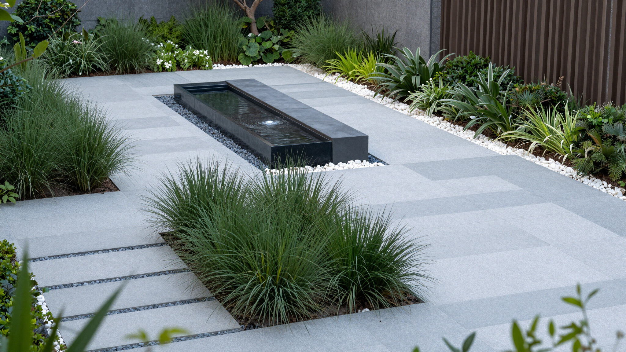 Bespoke landscape architecture that harmoniously integrates natural flora with functional outdoor living spaces.
