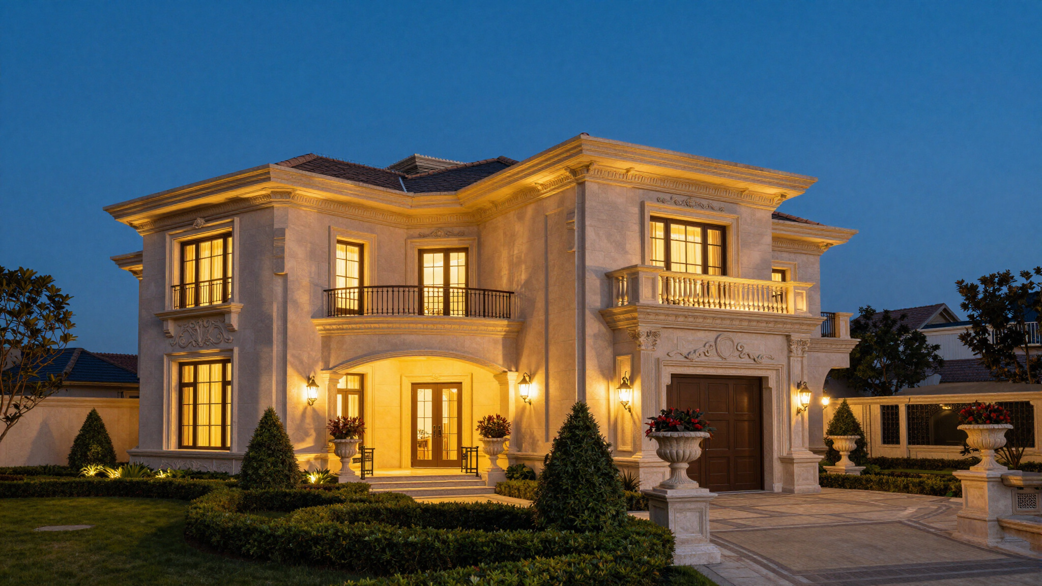 Sophisticated evening illumination designed to enhance security and highlight your property's unique features.